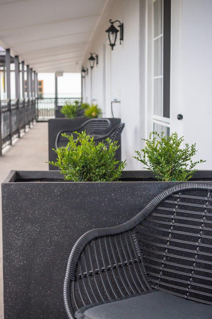 Seating on the balcony with extensive views of the Sunshine Coast.
